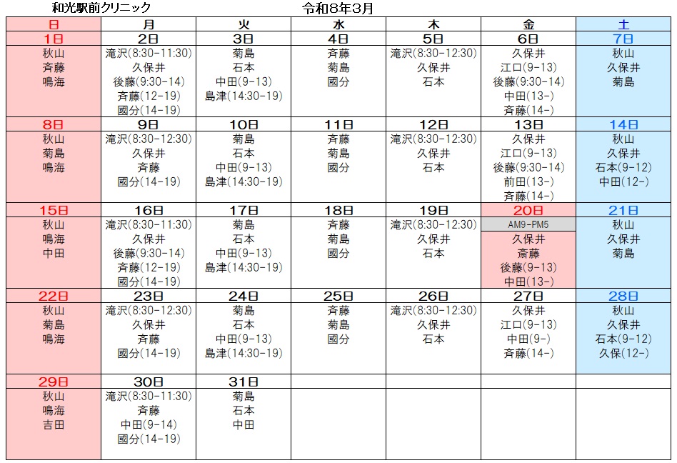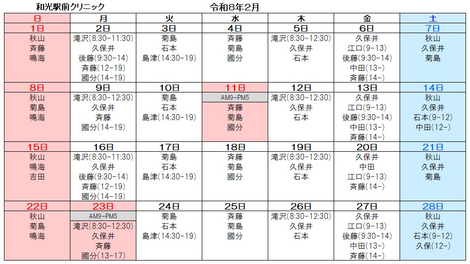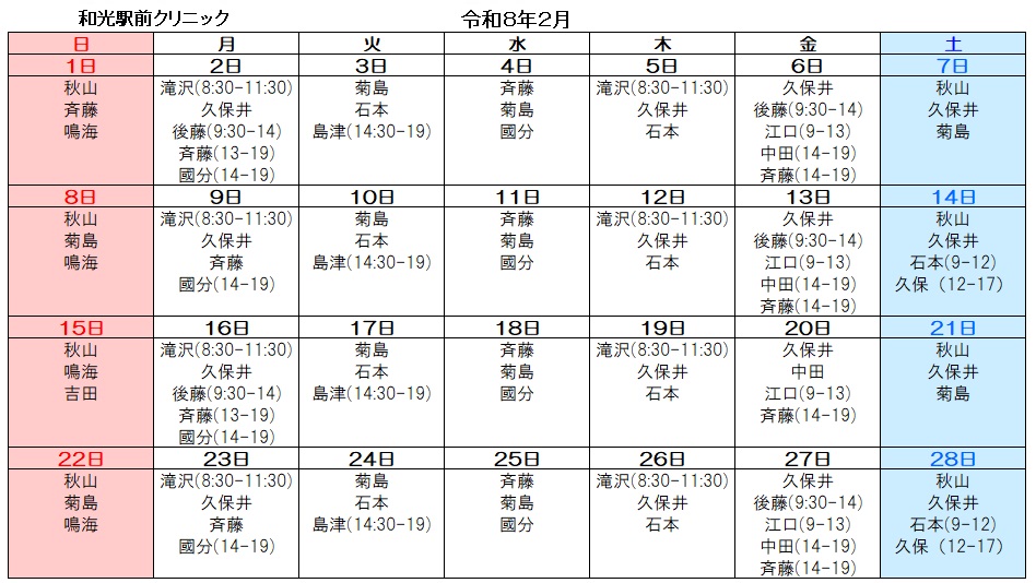 - 2026.1.12 令和8年2月分の医師勤務表を公開しております。