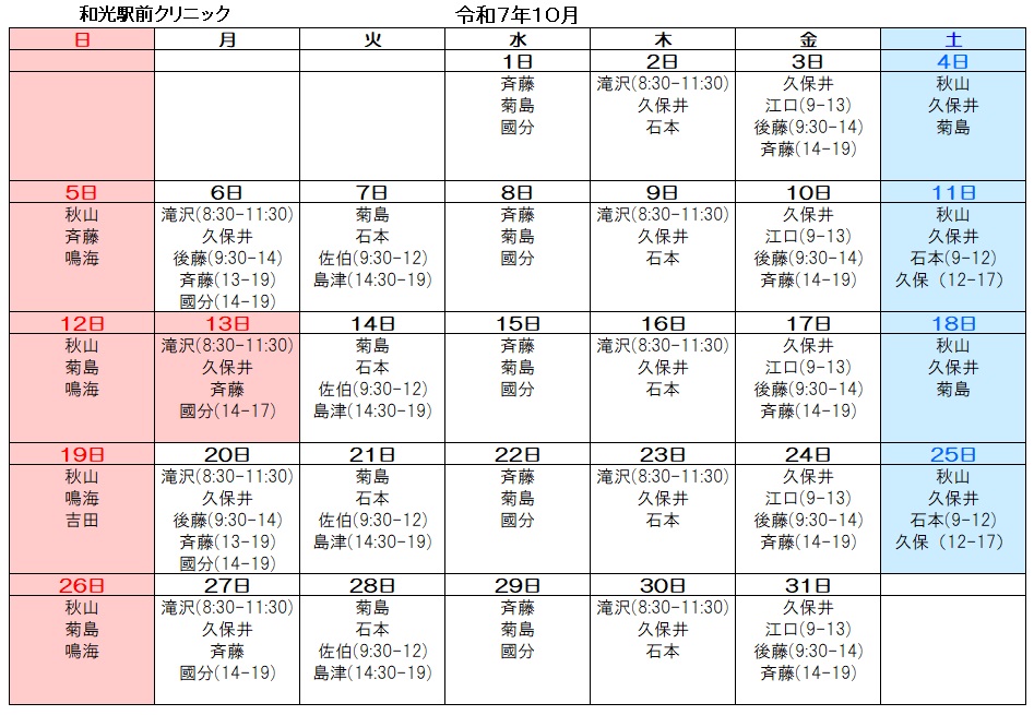 2025.10.3 佐伯医師の診察時間変更と休診のお知らせをクリニックからのお知らせに載せました。ご確認ください。